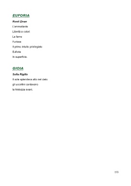 EUFORIA Ronit Zivan L’ammaliante Libertà a colori La fame Furiosa Il primo intuito privilegiato Euforia In superficie. GIOIA Sofia Rigillo Il sole splendeva alto nel cielo gli uccellini cantavano la tristezza svanì. 193