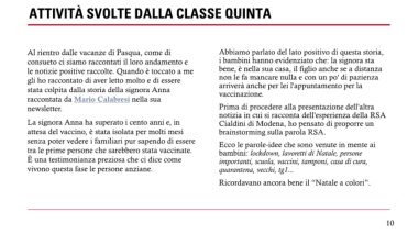 notizia in cui si racconta dell'esperienza della RSA
