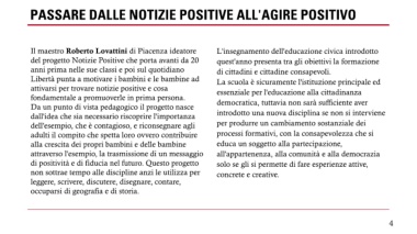 attivarsi per trovare notizie positive e cosa essenziale per l'educazione alla cittadinanza