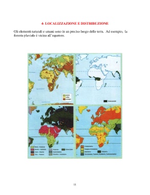 4- LOCALIZZAZIONE E DISTRIBUZIONE Gli elementi naturali e umani sono in un preciso luogo delle terra. Ad esempio, la foresta pluviale è vicina all’equatore. 11