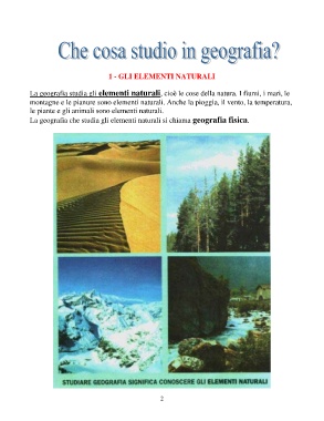 La geografia studia gli elementi naturali, cioè le cose della natura. I fiumi, i mari, le