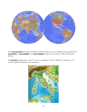 La carta fisica rappresenta i mari, le coste, le montagne, i fiumi e i laghi. La carta fisica ci fa
