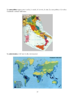 La carta politica rappresenta i confini, le strade, le ferrovie, le città. La carta politica ci fa vedere l’ambiente costruito dall’uomo. La carta tematica ci da’ tutte le altre informazioni 23