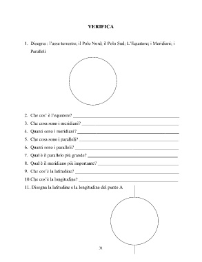 1. Disegna : l’asse terrestre; il Polo Nord; il Polo Sud; L’Equatore; i Meridiani; i