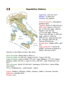 Isole principali: Sicilia 25.426 Km², Sardegna 23.813 Km², Isola d'Elba