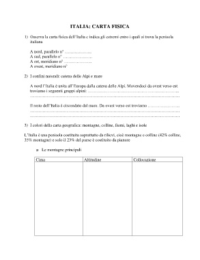 1) Osserva la carta fisica dell’Italia e indica gli estremi entro i quali si trova la penisola
