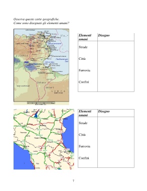 Osserva queste carte geografiche. Come sono disegnati gli elementi umani? Elementi Disegno umani Strade Città Ferrovia Confini Elementi Disegno umani Strade Città Ferrovia Confini 7