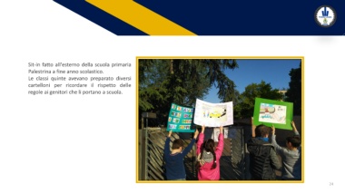 FR Sit-in fatto all'esterno della scuola primaria Palestrina a fine anno scolastico. Le classi quinte avevano preparato diversi cartelloni per ricordare il rispetto delle regole ai genitori che li portano a scuola. 24