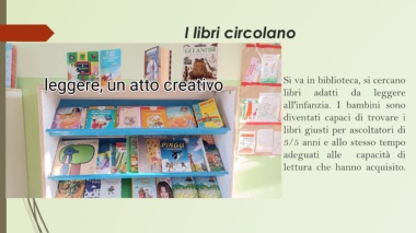 I libri circolano Si va in biblioteca, si cercano libri adatti da leggere all'infanzia. I bambini sono diventati capaci di trovare i libri giusti per ascoltatori di 3/5 anni e allo stesso tempo adeguati alle capacità di lettura che hanno acquisito.