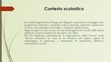 La scuola rappresenta il luogo privilegiato e speciale in cui leggere per