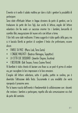 I libri letti sono stati moltissimi. Il tema suggerito è stato quello della pace, ma