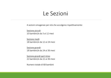 4 sezioni omogenee per età che accolgono rispettivamente: