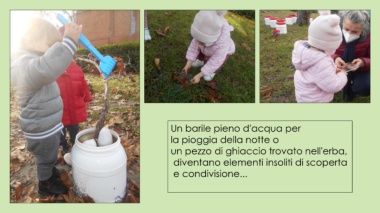 Un barile pieno d'acqua per la pioggia della notte o un pezzo di ghiaccio trovato nell'erba, diventano elementi insoliti di scoperta e condivisione...