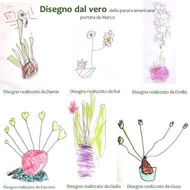 Disegno dal vero della patata americana portata da Marco Disegno realizzato da Damla Disegno realizzato da Rui Disegno realizzato da Emilia Disegno realizzato da Giacomo Disegno realizzato da Giulio Disegno realizzato da Giusy