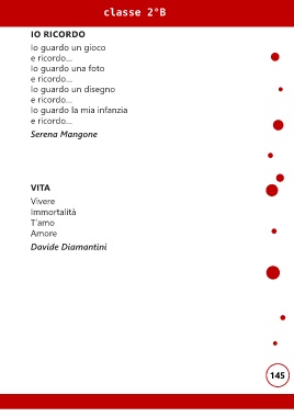 classe 2°B io riCorDo Io guardo un gioco e ricordo… Io guardo una foto e ricordo… Io guardo un disegno e ricordo… Io guardo la mia infanzia e ricordo… Serena Mangone ViTa Vivere Immortalità T’amo Amore Davide Diamantini 145