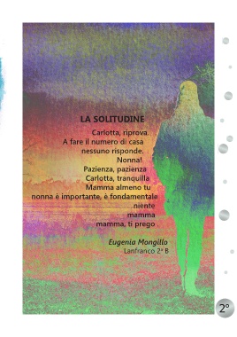 LA SOLITUDINE Carlotta, riprova. A fare il numero di casa nessuno risponde. Nonna! Pazienza, pazienza Carlotta, tranquilla Mamma almeno tu nonna è importante, è fondamentale niente mamma mamma, ti prego . Eugenia Mongillo a Lanfranco 2 B
