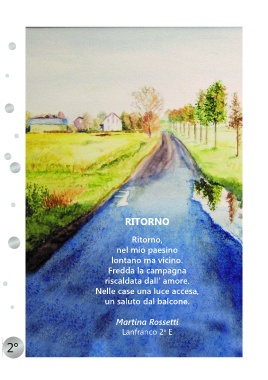 RITORNO Ritorno, nel mio paesino lontano ma vicino. Fredda la campagna riscaldata dall’ amore. Nelle case una luce accesa, un saluto dal balcone. Martina Rossetti a Lanfranco 2 E