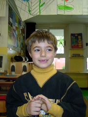 "Io faccio il bambino CONTENTO, che vuole fare vedere una costruzione che ha fatto alla mamma" |