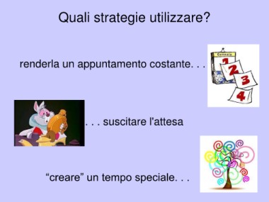 Quali strategie utilizzare? renderla un appuntamento costante. . . . . . suscitare l'attesa “creare” un tempo speciale. . .