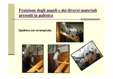 Fruizione degli angoli e dei diversi materiali presenti in palestra Spalliera con arrampicata