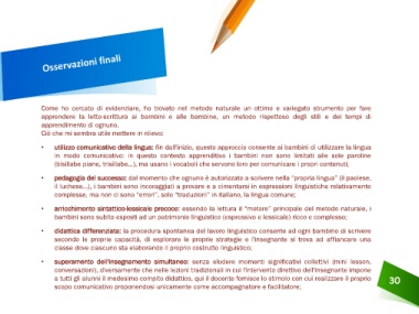 • arricchimento sintattico-lessicale precoce: essendo la lettura il “motore” principale del metodo naturale, i