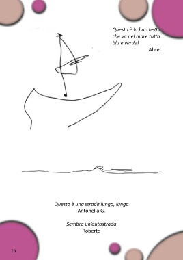 Questa è la barchetta che va nel mare tutto blu e verde! Alice Questa è una strada lunga, lunga Antonella G. Sembra un’autostrada Roberto 16