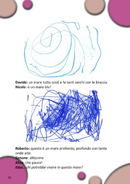 Davide: un mare tutto così( e fa tanti cerchi con le braccia Nicole: è un mare blu! Roberto: questo è un mare profondo, profondo con tante onde alte. Simone: altissime Alice: che paura! Educ.: chi potrebbe vivere in questo mare? 26