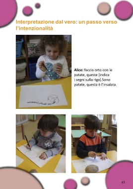 Interpretazione dal vero: un passo verso l’intenzionalità Alice: faccio orto con le patate, queste [indica i segni sulla riga].Sono patate, questa è l’insalata. 43