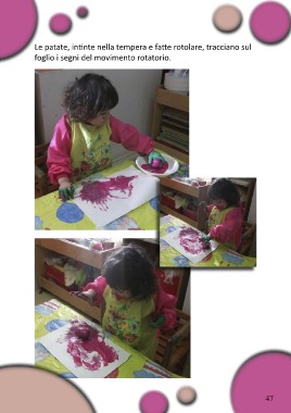 Le patate, intinte nella tempera e fatte rotolare, tracciano sul foglio i segni del movimento rotatorio. 47